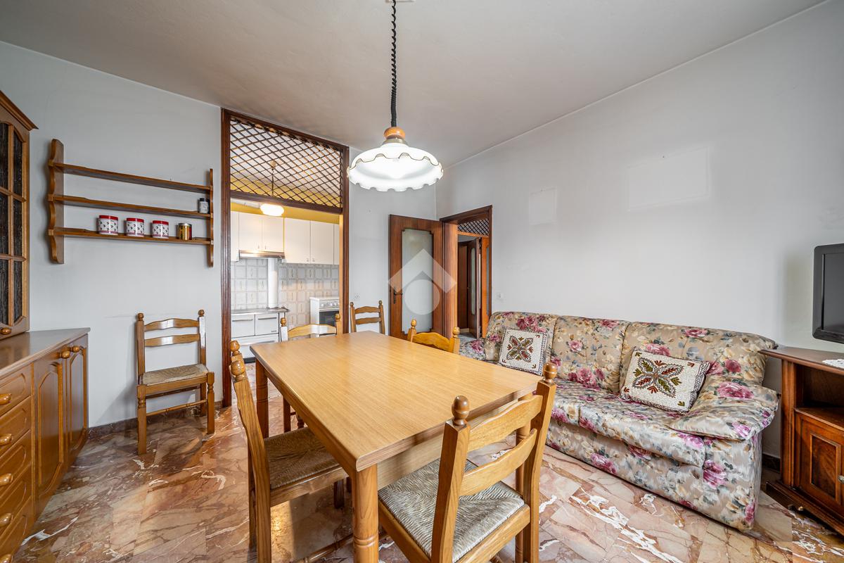 L'immobile si sviluppa interamente al piano rialzato con ingresso indipendente, luminosa sala da pranzo collegata al retro cucina con accesso a un balcone, ampio soggiorno, due camere matrimoniali, una camera singola e un servizio finestrato.