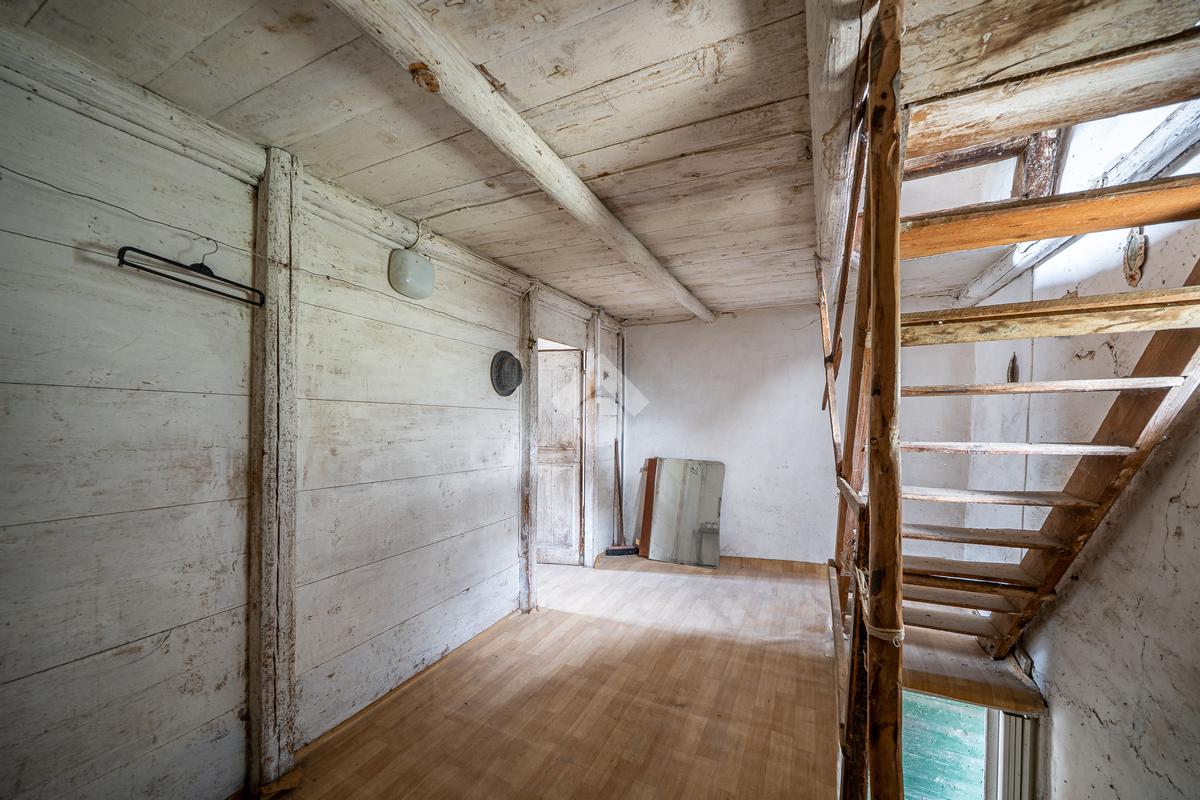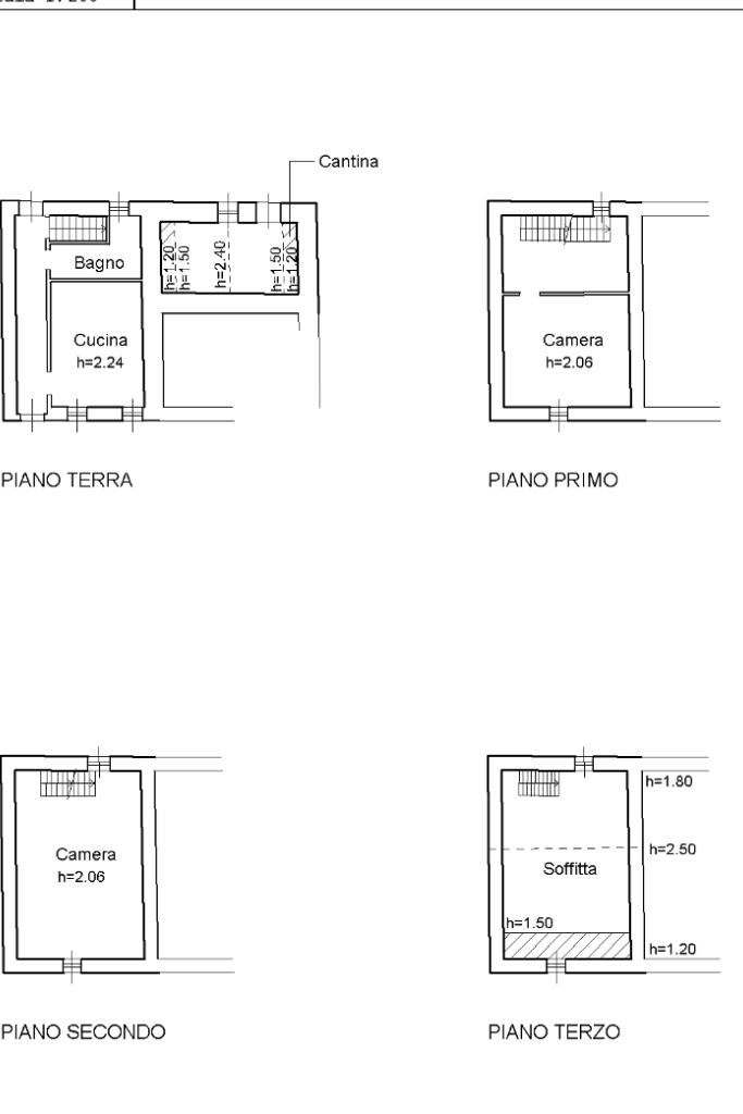 La soluzione si compone al piano terra di una cucina e di un servizio finestrato con doccia e vasca; il primo e secondo livello sono composti di due camere da letto per piano, l'ultimo livello ospita la soffitta. A completare la soluzione troviamo l'ampia corte di proprietà e la cantina con arco a volto. Tutti i locali godono di doppia esposizione, rendendo così gli ambienti luminosi.